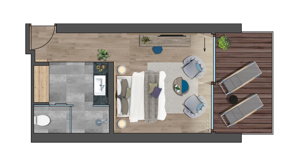 Kingsize-Bett, Wohnecke, Flat-TV, Rain-Shower, Nespresso-Kaffeemaschine & Teestation, Minibar, Holzboden.