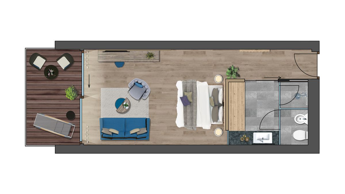 Kingsize-Bett, Wohnecke mit ausziehbarer Schlafcouch, Flat-TV, Rain-Shower & Bidet, Nespresso-Kaffeemaschine & Teestation, Minibar, Holzboden, Blick ins Grüne oder auf den Garten.
